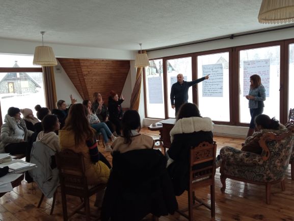 [:bs]15 romskih i egipćanskih aktivistkinja je u periodu 25.02.-27.02.2023.godine kroz trodnevnu obuku imalo priliku da obnovi svoja znanja u dijelu povjerljivog lica prilikom pružanja usluga žrtvama dječjeg ugovorenog braka i nasilja u porodici. Zajedničkim radom aktivistkinje su radile na pripremi Mini akcionog plana povodom obilježavanja značajnih Međunarodnih dana a imaju za cilj povezivanje aktivistkinja sa predstavnicima relevantnih institucija kao i putem direktnih akcija na terenu sa zajednicom Roma i Egipćana koje se odnose na prava žena, posledice dječjeg ugovorenog braka, nasilja u porodici nad ženama i djecom.